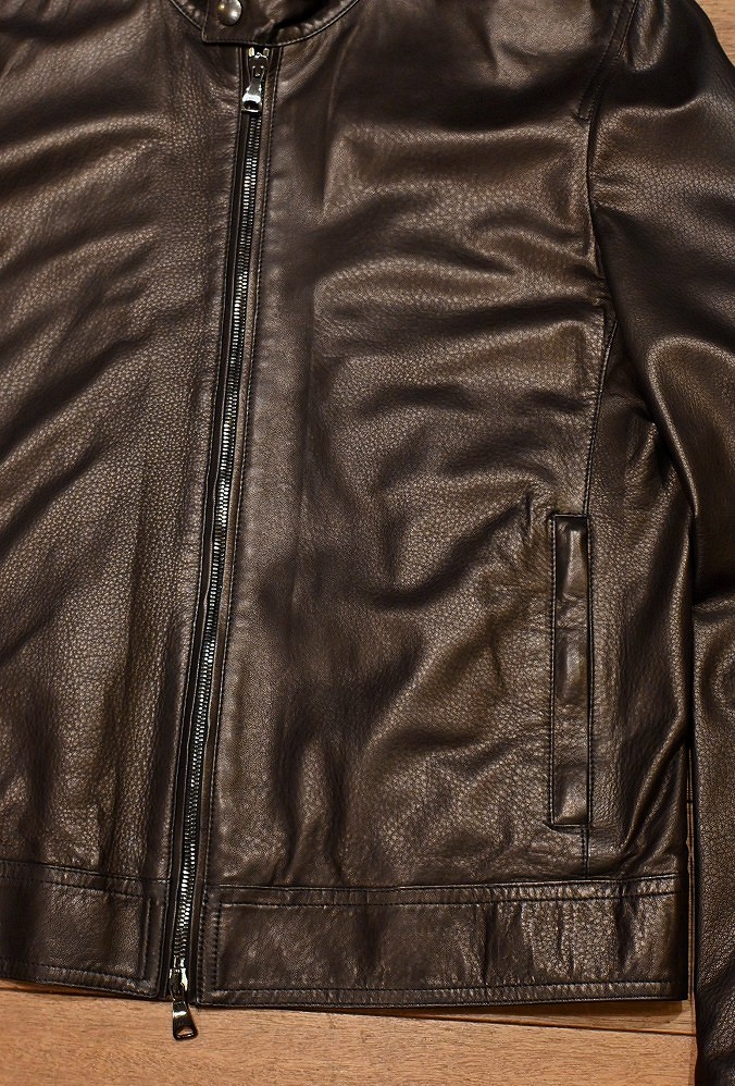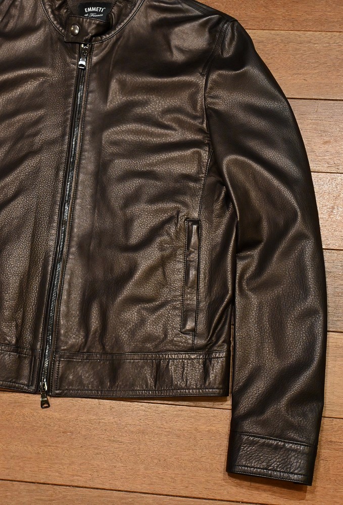 - > EMMETI(エンメティ) ラムスキン ライダースジャケット イタリア製(BLACK/50)羊革 美中古