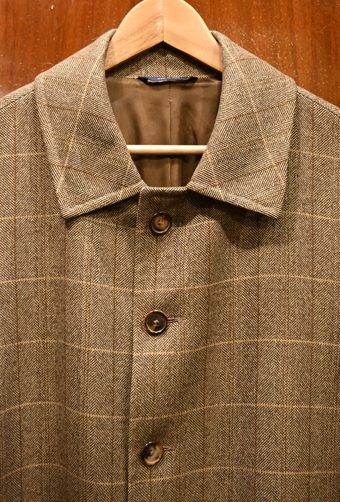 70-80年代のものと思われます Burberry's(バーバリー)のバルマカーンコート。 ブラウンを基調としたグレンプレイドの変わりヘリンボーンツイード。 フロントボタンが比翼ではなく…